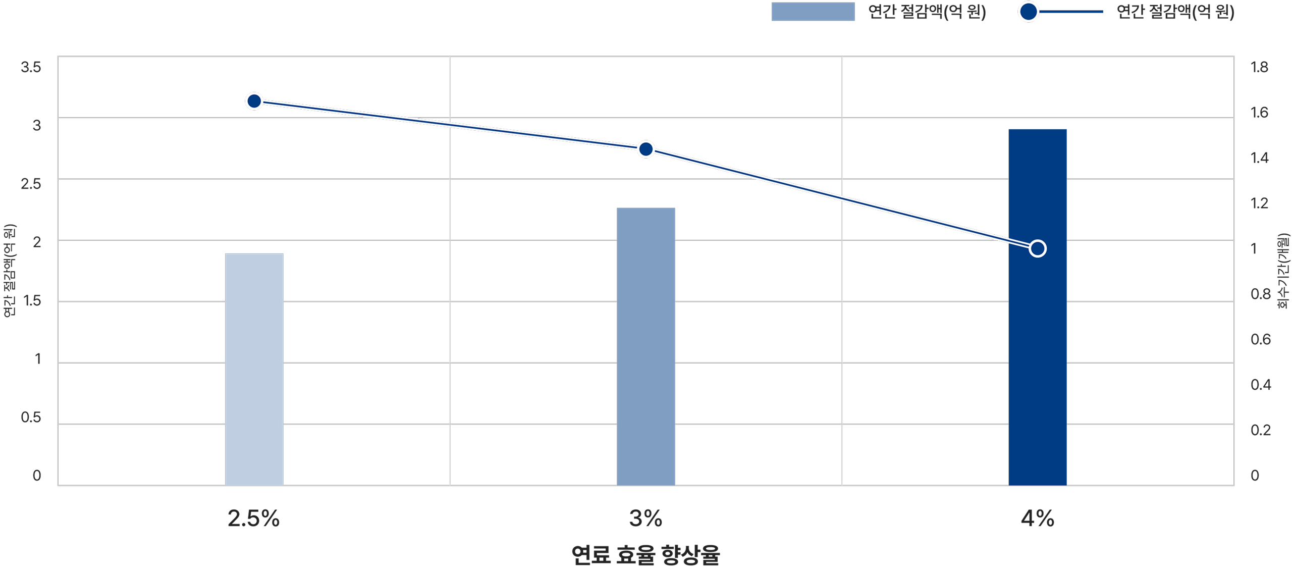 또한 연료 효율 향상만으로도 투자 대비 10배 이상의 경제성을 확보할 수 있습니다.